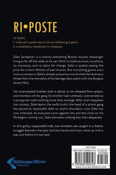 Zeke Sandaman is a twenty-something Boston bicycle messenger living as far off the radar as he can. With no bank account, no phone, no insurance, and no plans for change, Zeke is quietly paying the price for a short lifetime of bad choices. But everything grows even more uncertain in Zeke's already precarious world when he receives a threat from the remnants of his teenage days spent with the Burgess Street Mob. His incarcerated brother Josh is about to be released from prison, and members of the gang his brother had ruthlessly commanded as a young man want nothing more than revenge. After Josh reappears into society, Zeke learns the awful truth: the head of a prison gang has placed an impossible debt on Josh's shoulders--one Zeke has now inherited. As everyone turns against him and the clock on his life begins running out, Zeke becomes nothing less than desperate. In this gritty, suspenseful tale, two brothers are cuahgt in a frantic struggle between the past and the future and must come up with a way out before it's too late.