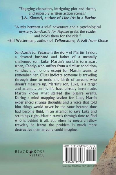 "If you enjoyed A Wrinkle in Time or Tuck Everlasting, get ready for the treat Sandcastle for Pegasus is." -Jim Laughter, author of The Apostle Murders Sandcastle for Pegasus is the story of Martin Taylor, a devoted husband and father of a mentally challenged son, Luke. Martin's world is torn apart when, Candy, who suffers from a similar condition, vanishes and no one except for Martin seems to remember her. Clues indicate someone is traveling through time to undo the birth of anyone who doesn't measure up. Martin's son, Luke, is a target and attempts on his life have already been made. Martin knows what started the bizarre events. During a mind mapping session for Luke, Martin experienced strange thoughts and a voice that told him things would never be the same because time had become fluid. In an attempt to save Luke and set things right, Martin travels through time to find who is behind it all. But when he meets a fellow traveler, he learns the problem is much more destructive than anyone could imagine.