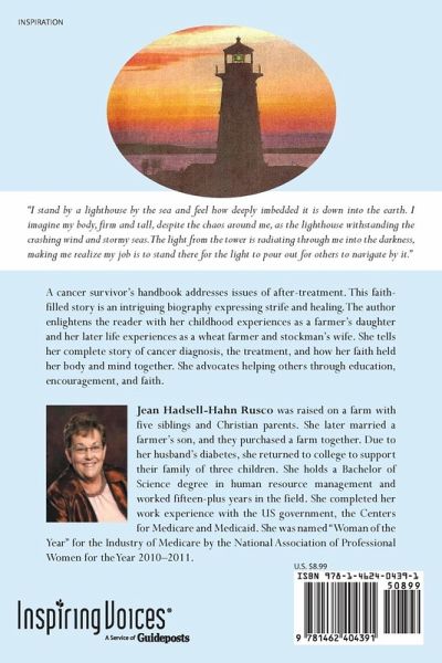 "I stand by a lighthouse by the sea and feel how deeply imbedded it is down into the earth. I imagine my body, firm and tall, despite the chaos around me, as the lighthouse withstanding the crashing wind and stormy seas. The light from the tower is radiating through me into the darkness, making me realize my job is to stand there for the light to pour out for others to navigate by it." A cancer survivor's handbook addresses issues of after-treatment. This faith-filled story is an intriguing biography expressing strife and healing. The author enlightens the reader with her childhood experiences as a farmer's daughter and her later life experiences as a wheat farmer and stockman's wife. She tells her complete story of cancer diagnosis, the treatment, and how her faith held her body and mind together. She advocates helping others through education, encouragement, and faith.