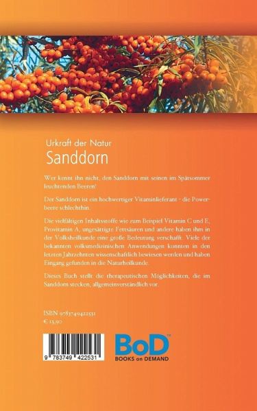 Sanddorn - leuchtend orange Beeren und saurer Saft - so kennt mancher diese gesunde Pflanze. Kaum einer weiß aber, dass die Beeren neben dem Saft zwei verschiedene Öle enthalten, die in Osteuropa und Asien seit Generationen gegen diverse Leiden eingesetzt werden. Sanddornbeeren sind Powerbeeren! Das Buch macht den Leser bekannt mit dem derzeitigen Stand des Wissens und führt sachlich und fundiert über Botanik, Ökologie und Aufarbeitung zu den Inhaltsstoffen und ihren Anwendungen.