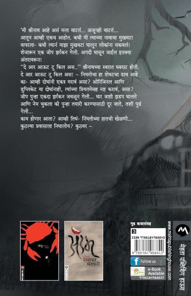 'I THINK THAT I AM SHREENATH.... I STILL THINK SO... FROM WITHIN WE ARE ONE AND THE SAME. SOMETIMES HE WORES THE MASK WITH MY NAME WHILE AT OTHERS I DO SO TO FOOL PEOPLE.' A JEEP PASSED BY SPEEDILY AND VERY CLOSELY. IT WOULD HAVE BRUSHED UP. 'THEY ARE OUT TO KILL US!' THE TERROR IN SHREENATH'S VOICE WAS UNMISTAKABLE. 'THEY ARE OUT TO KILL US! IS THIS SOME KIND OF GAME THAT DESTINY IS PLAYING WITH US? IT WANTS TO KILL US TOGETHER; BOTH THE ORIGINAL AND THE DUPLICATE, ALONG WITH THEIR FIANCÉES.' ONCE AGAIN THE JEEP PASSED BY. IT SYMBOLIZED A KITE SWOOPING DOWN FROM HIGH SKIES UPON ITS PREY. AS IT MISSES THE PREY IT GOES BACK TO GET INTO ACTION. WHAT IS GOING TO HAPPEN NOW? WE THREE ARE SET UPON THE JOURNEY. WHERE? NO ONE KNOWS. HOW LONG? NO ONE KNOWS. WE ARE MERE PUPPETS IN THE HANDS OF DESTINY. TEN BREATHTAKING STORIES! EACH ONE CREATING DOUBT BEYOND IMAGINATION WHILE PILING UP THE TENSION. TEN STORIES THAT WOULD REALLY CREATE DOUBT! SHADED WITH GAMES PLAYED BY HUMAN MINDS THESE STORIES TAKE US TO IMMEASURABLE HEIGHT AND FATHOMLESS DEPTH AT THE SAME TIME. MATKARI HAS ONCE AGAIN PROVED THAT HIS STORIES ARE NOT JUST ENTERTAINING OR PLEASING. THEY TAKE US BEYOND THAT WHERE IT IS IMPOSSIBLE TO COMPREHEND. THEY ARE TERRIBLY FRIGHTFUL. THEY ARE MYSTERIOUS. THESE TEN STORIES ONCE AGAIN PROVE HIS COMMAND OVER WORDS AND THEMES AND EXCELLENT MANIFESTATION OF NOVEL IDEAS. THEY UNDERLINE HIS AUTHORITY IN WRITING SUCH DUBIOUS STORIES. '¿¿ ¿¿¿¿¿¿¿ ¿¿¿ ¿¿¿ ¿¿¿ ¿¿¿¿¿... ¿¿¿¿¿¿ ¿¿¿¿¿... ¿¿¿¿ ¿¿¿¿¿ ¿¿¿ ¿¿¿¿. ¿¿¿ ¿¿ ¿¿¿¿¿¿¿¿ ¿¿¿¿¿¿ ¿¿¿¿¿¿ ¿¿¿¿¿¿- ¿¿¿ ¿¿¿¿¿¿ ¿¿¿¿ ¿¿¿¿¿¿ ¿¿¿¿¿ ¿¿¿¿¿¿¿ ¿¿¿¿¿! ¿¿¿¿¿¿¿ ¿¿ ¿¿¿ ¿¿¿¿ ¿¿¿¿. ¿¿¿¿ ¿¿¿¿¿ ¿¿¿¿ ¿¿¿¿¿¿ ¿¿¿¿¿¿¿¿¿! ``¿¿ ¿¿ ¿¿¿ ¿¿ ¿¿¿ ¿¿..`` ¿¿¿¿¿¿¿¿¿¿¿ ¿¿¿¿¿¿ ¿¿¿¿¿ ¿¿¿¿. ¿¿ ¿¿ ¿¿¿ ¿¿ ¿¿¿ ¿¿! - ¿¿¿¿¿¿¿ ¿¿ ¿¿¿¿¿¿ ¿¿¿ ¿¿¿ ¿¿- ¿¿¿¿¿ ¿¿¿¿¿¿¿ ¿¿¿¿¿ ¿¿¿¿¿ ¿¿¿? ¿¿¿¿¿¿¿ ¿¿¿ ¿¿¿¿¿¿¿¿¿ ¿¿ ¿¿¿¿¿¿¿¿¿, ¿¿¿¿¿¿¿¿¿ ¿¿¿¿¿¿¿¿¿¿¿ ¿¿¿¿ ¿¿¿¿¿, ¿¿¿? ¿¿¿ ¿¿¿¿¿¿ ¿¿¿¿ ¿¿¿¿ ¿¿¿¿¿ ¿¿¿¿... ¿¿¿ ¿¿¿ ¿¿¿ ¿¿¿¿¿ ¿¿¿ ¿¿¿ ¿¿¿¿¿ ¿¿ ¿¿¿¿¿¿ ¿¿¿¿¿ ¿¿¿¿¿¿¿¿¿¿ ¿¿¿ ¿¿¿¿, ¿¿¿ ¿¿¿¿ ¿¿¿¿... ¿¿¿ ¿¿¿¿¿¿¿ ¿¿¿? ¿¿¿¿¿ ¿¿¿¿- ¿¿¿¿¿¿¿¿¿ ¿¿¿¿¿ ¿¿¿¿¿... ¿¿¿¿¿¿¿ ¿¿¿¿¿¿¿¿¿ ¿¿¿¿¿¿¿? ¿¿¿¿¿ - ¿¿¿¿¿ ¿¿¿¿¿ ¿¿¿¿¿ ¿¿¿ ¿¿ ¿¿¿ ¿¿¿. ¿¿¿¿¿¿¿¿ ¿¿¿ ¿¿¿¿¿¿¿ ¿¿¿¿¿ ¿¿¿¿¿¿¿ ¿¿¿¿¿¿. ¿¿¿ ¿¿¿¿¿¿¿¿¿¿ ¿¿¿¿¿¿ ¿¿¿¿¿¿. ¿¿¿¿¿¿¿¿¿¿, ¿¿¿¿ ¿¿¿¿¿¿¿ ¿¿¿¿¿¿¿¿ ¿¿¿¿¿¿¿¿¿¿¿¿¿ ¿¿ ¿¿¿. ¿¿¿¿¿¿¿¿¿¿¿¿¿¿¿¿¿¿¿ ¿¿¿¿¿ ¿¿¿¿¿ ¿¿¿¿¿¿¿¿¿¿ ¿¿¿¿¿ ¿¿¿¿¿¿-¿¿. ¿¿¿ ¿¿¿¿¿ ¿¿¿¿ ¿¿¿¿¿¿¿¿¿... ¿¿¿ ¿¿¿¿¿¿ ¿¿ ¿¿¿¿¿¿¿¿¿. ¿¿¿ ¿¿¿¿¿¿¿ ¿¿¿¿¿ ¿¿¿¿¿¿¿ ¿¿¿¿¿¿¿¿¿¿ ¿¿¿¿¿¿¿¿¿. ¿¿¿¿¿¿¿ ¿¿¿ ¿¿¿¿ ¿¿¿¿¿¿