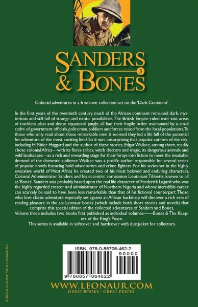 Colonial adventures in a 6 volume collection set on the 'Dark Continent' In the first years of the twentieth century much of the African continent remained dark, mysterious and still full of strange and exotic possibilities. The British Empire ruled over vast areas of trackless plain and dense equatorial jungle, all had their fragile order maintained by a small cadre of government officials, policemen, soldiers and forces raised from the local populations. To those who only read about these remarkable men it seemed they led a life full of the potential for adventure of the most exciting kind. So it was unsurprising that popular authors of the day-including H. Rider Haggard and the author of these stories, Edgar Wallace, among them, readily chose colonial Africa-with its fierce tribes, witch doctors and magic, its dangerous animals and wild landscapes-as a rich and rewarding stage for their forays into fiction to meet the insatiable demand of the domestic audience. Wallace was a prolific author responsible for several series of popular novels featuring bold adventurers and crime fighters. For his series set in the highly evocative world of West Africa he created two of his most beloved and enduring characters, Colonial Administrator Sanders and his eccentric companion Lieutenant Tibbetts, known to all as 'Bones'. Sanders was probably based upon the real life character of Frederick Lugard who was the highly regarded creator and administrator of Northern Nigeria and whose incredible career can scarcely be said to have been less remarkable than that of his fictional counterpart. Those who love classic adventure especially set against an African backdrop will discover a rich vein of reading pleasure in the six Leonaur books (which include both short stories and novels) that comprise this special edition of the collected adventures of Sanders and Bones. Volume three includes two books first published as individual volumes-Bones & The Keepers of the King's Peace. This series is available in softcover and hardcover with dustjacket for collectors.