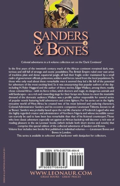Colonial adventures in a 6 volume collection set on the 'Dark Continent' In the first years of the twentieth century much of the African continent remained dark, mysterious and still full of strange and exotic possibilities. The British Empire ruled over vast areas of trackless plain and dense equatorial jungle, all had their fragile order maintained by a small cadre of government officials, policemen, soldiers and forces raised from the local populations. To those who only read about these remarkable men it seemed they led a life full of the potential for adventure of the most exciting kind. So it was unsurprising that popular authors of the day-including H. Rider Haggard and the author of these stories, Edgar Wallace, among them, readily chose colonial Africa-with its fierce tribes, witch doctors and magic, its dangerous animals and wild landscapes-as a rich and rewarding stage for their forays into fiction to meet the insatiable demand of the domestic audience. Wallace was a prolific author responsible for several series of popular novels featuring bold adventurers and crime fighters. For his series set in the highly evocative world of West Africa he created two of his most beloved and enduring characters, Colonial Administrator Sanders and his eccentric companion Lieutenant Tibbetts, known to all as 'Bones'. Sanders was probably based upon the real life character of Frederick Lugard who was the highly regarded creator and administrator of Northern Nigeria and whose incredible career can scarcely be said to have been less remarkable than that of his fictional counterpart. Those who love classic adventure especially set against an African backdrop will discover a rich vein of reading pleasure in the six Leonaur books (which include both short stories and novels) that comprise this special edition of the collected adventures of Sanders and Bones. Volume four includes two books first published as individual volumes-Lieutenant Bones and Bones in London. This series is available in softcover and hardcover with dustjacket for collectors.