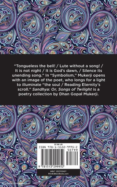 Sandhya, or Songs of Twilight (1917) is a poetry collection by Dhan Gopal Mukerji. Published while Mukerji was a young student in California, Sandhya, or Songs of Twilight is the second collection of poems from the first Indian writer to gain a popular audience in the United States. Lyrical and romantic, Mukerji's poems capture his commitment to beauty while maintaining his sense of isolation and exile as a young man living far from home. In "Symbolism," the collection's opening poem, Mukerji is a poet in search of a song: "Tongueless the bell! / Lute without a song! / It is not night / It is God's dawn, / Silence its unending song." Desperate for the beauty and truth of the world outside "pain's window," he finds "Faith's candle lit," lighting "Eternity's scroll" for the soul to read at last. Lyrically gifted and profoundly mysterious, Mukerji presents his creative process as a struggle with human emotions. Later, he grounds his feeling in the country he left behind: "O, frail, faint call which I seek to echo! / O, breath of love laden with the aroma of my soul! / Why seek I ever without, O guest at my door?" In "After a Bengali Song," he provides a powerful image of isolation and longing from a heart that remains "without" for as long as his exile continues. Although he never returned to his native country, Mukerji left an inspiring legacy through his literary achievement and unwavering commitment to Indian independence. Since our inception in 2020, Mint Editions has kept sustainability and innovation at the forefront of our mission. Each and every Mint Edition title gets a fresh, professionally typeset manuscript and a dazzling new cover, all while maintaining the integrity of the original book. With thousands of titles in our collection, we aim to spotlight diverse public domain works to help them find modern audiences. Mint Editions celebrates a breadth of literary works, curated from both canonical and overlooked classics from writers around the globe.