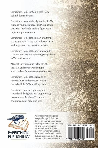 Sandpaper is a collection of poetry by Ravenn L. Moore. Sandpaper is magical, full of wisdom, revelatory and empowering! This eclectic, upbeat, and inspiring collection of poetry will tug at your heartstrings, making you question the many aspects of life. Sandpaper boasts more than 100 poems. Each poem inside will make you realize you're not the only one to have experienced certain emotions and reactions to life's many situations. This must-read collection of poetry, Sandpaper, will make every reader come to terms with the rough edges of their very own lives through a very candid and heartfelt…mehr