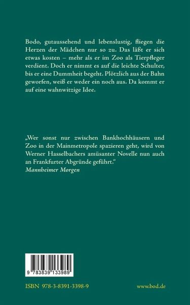 Bodo, gutaussehend und lebenslustig, fliegen die Herzen der Mädchen nur so zu. Das lässt er sich etwas kosten - mehr als er im Zoo als Tierpfleger verdient. Doch er nimmt es auf die leichte Schulter, bis er eine Dummheit begeht. Plötzlich aus der Bahn geworfen, weiß er weder ein noch aus. Da kommt er auf eine wahnwitzige Idee.