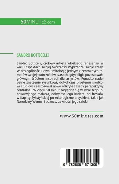 Sandro Botticelli, czo¿owy artysta w¿oskiego renesansu, w wielu aspektach swojej twórczo¿ci wyprzedzä swoje czasy. W szczególno¿ci uczyni¿ mitologi¿ jednym z centralnych tematów swojej twórczo¿ci w czasach, gdy religia pozostawäa g¿ównym ¿ród¿em inspiracji dla artystów. Ponadto nadä pe¿ne znaczenie rysunkowi, dotychczas prostemu ¿rodkowi studiów, i zastosowä nowo odkryte zasady perspektywy centralnej. W ci¿gu 50 minut zag¿¿bisz si¿ w ¿ycie tego innowacyjnego malarza, odkryjesz jego karier¿, od fresków w Kaplicy Syksty¿skiej po mitologiczne arcydzie¿a, takie jak Narodziny Wenus, i poznasz zawi¿o¿ci jego sztuki.