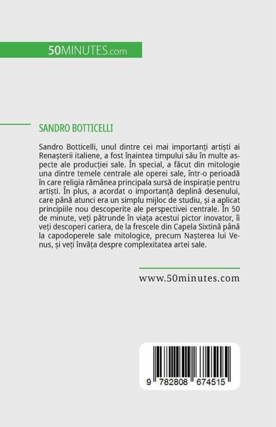 Sandro Botticelli, unul dintre cei mai importan¿i arti¿ti ai Renäterii italiene, a fost înaintea timpului s¿u în multe aspecte ale produc¿iei sale. În special, a f¿cut din mitologie una dintre temele centrale ale operei sale, într-o perioad¿ în care religia r¿mânea principala surs¿ de inspiräie pentru arti¿ti. În plus, a acordat o importan¿¿ deplin¿ desenului, care pân¿ atunci era un simplu mijloc de studiu, ¿i a aplicat principiile nou descoperite ale perspectivei centrale. În 50 de minute, ve¿i p¿trunde în viäa acestui pictor inovator, îi ve¿i descoperi cariera, de la frescele din Capela Sixtin¿ pân¿ la capodoperele sale mitologice, precum Näterea lui Venus, ¿i ve¿i înv¿¿a despre complexitatea artei sale.