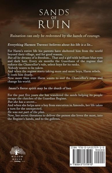 "Welcome to your next dystopian romance binge read series!" Angel.S ~ Goodreads. Harm Three things I know to be true. One, being selected by the Guardian regime is a fate worse than death. Two, I devote my days to tirelessly handcrafting furniture for trade to keep my family taxes paid and the four of us safe from execution. And I will do anything to stop that from happening. And three ... Everything I know about my life, is a lie. When the Guardian regime takes more boys for its ranks, I have to rebel. And it costs me everything. Devastated, the only choice is to run... Imani Free spirit ... That's what my uncle calls me. I prefer rebel fighter, travelling the sands helping people affected by the regime. And when a boy finds his way to my halfway house, an abandoned Guardian outpost, I swear I am not getting involved. But then he walks right into the heart of trouble. He won't last three days out here. He needs me to survive. My plans to help the rebellion stop the Chancellor who has altered the weather to keep the people in poverty are on hold. And with Harm, I make an epic discovery that could change it all. But when my intimate ties to the regime deliver the person I love most, and the rebels only hope, straight to the hands of the Guardians ... My world falls apart. Will Harm and Imani survive the Guardians that hunt him or will the spark he and Imani share end in tragedy... Sands of Ruin is an emotional first book in the Sands of Ruin series. If you like a fierce female lead, a sweetheart main male character, slow burn romance, found family and a heart-warming underdog to root for, then you'll love R M Muller's epic dystopian romance. Buy Sands of Ruin and dive headfirst into the glittering desert sands to fight for all that is right.