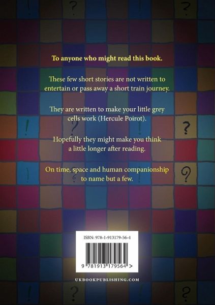 To anyone who might read this book. These few short stories are not written to entertain or pass away a short train journey. They are written to make your little grey cells work (Hercule Poirot). Hopefully they might make you think a little longer after reading. On time, space and human companionship to name but a few.