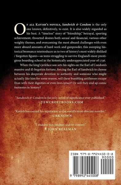 A "timeless" story of "friendship," betrayal, sporting achievement, thwarted desires both sexual and financial, various other weighty themes, and overcoming the most absurd challenges with even more absurd amounts of hard work and gunpowder, this sweeping historical bromance reintroduces us to two of history's most widely disliked and forgotten figures, as teens struggling toto survive England's most prestigious boarding school in the historically underappreciated year of 1736. When the king's jerkface son sets his sights on the Earl of Condom's massive and ill0begotten fortune, forcing the Earl of Sandwich to choose between his desperate devotion to authority and someone who might actually like him for some reason, will these bumbling antiheroes escape Eton with their dignities or even lives intact? Or will they end up comic footnotes in history?