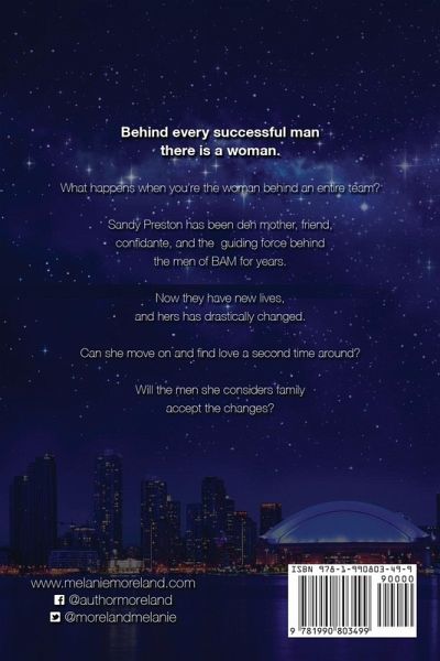 New York Times/USA Today/Wall Street Journal bestselling author Melanie Moreland, lives a happy and content life in a quiet area of Ontario with her beloved husband of thirty-plus years and their rescue cat, Amber. Nothing means more to her than her friends and family, and she cherishes every moment spent with them. While seriously addicted to coffee, and highly challenged with all things computer-related and technical, she relishes baking, cooking, and trying new recipes for people to sample. She loves to throw dinner parties, and also enjoys traveling, here and abroad, but finds coming home is always the best part of any trip. Melanie loves stories, especially paired with a good wine, and enjoys skydiving (free falling over a fleck of dust), extreme snowboarding (falling down stairs), and piloting her own helicopter (tripping over her own feet.) She's learned happily ever afters, even bumpy ones, are all in how you tell the story.