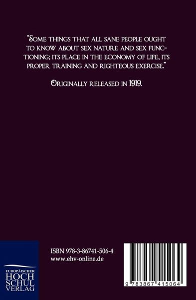 Some things that all sane people ought to know about sex nature and sex functioning; its place in the economy of life, its proper training and righteous exercise. Originally released in 1919.