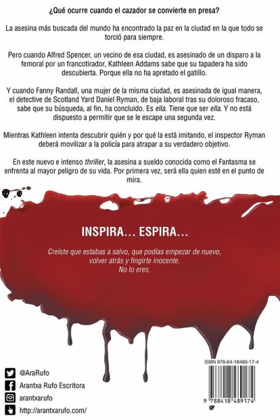 ¿Qué ocurre cuando el cazador se convierte en presa? La asesina más buscada del mundo ha encontrado la paz en la ciudad en la que todo se torció para siempre. Pero cuando Alfred Spencer, un vecino de esa ciudad, es asesinado de un disparo a la femoral por un francotirador, Kathleen Addams sabe que su tapadera ha sido descubierta. Porque ella no ha apretado el gatillo. Y cuando Fanny Randall, una mujer de la misma ciudad, es asesinada de igual manera, el detective de Scotland Yard Daniel Ryman, de baja laboral tras su doloroso fracaso, sabe que su búsqueda, al fin, ha concluido. Es ella. Tiene que ser ella. Y no está dispuesto a permitir que se le escape una segunda vez. Mientras Kathleen intenta descubrir quién y por qué la está imitando, el inspector Ryman deberá movilizar a la policía para atrapar a su verdadero objetivo. En este nuevo e intenso thriller, la asesina a sueldo conocida como el Fantasma se enfrenta al mayor peligro de su vida. Por primera vez, será ella quien esté en el punto de mira.