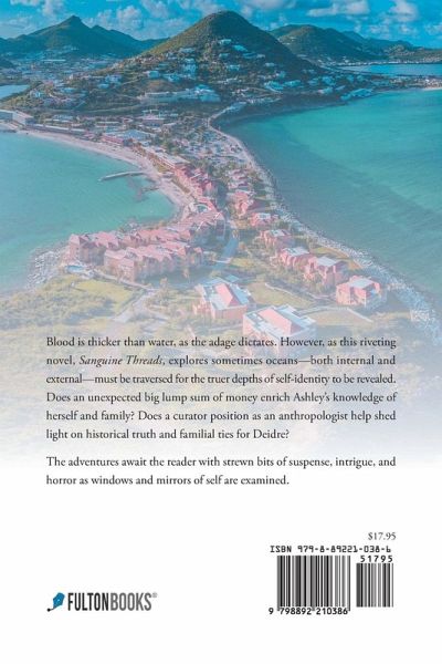 Blood is thicker than water, as the adage dictates. However, as this riveting novel, Sanguine Threads, explores sometimes oceans--both internal and external--must be traversed for the truer depths of self-identity to be revealed. Does an unexpected big lump sum of money enrich Ashley's knowledge of herself and family? Does a curator position as an anthropologist help shed light on historical truth and familial ties for Deidre? The adventures await the reader with strewn bits of suspense, intrigue, and horror as windows and mirrors of self are examined.