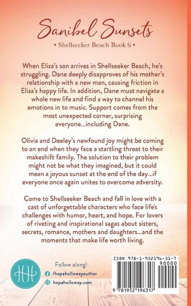 When Eliza's son arrives in Shellseeker Beach, he's struggling. Dane deeply disapproves of his mother's relationship with a new man, causing friction in Eliza's happy life. In addition, Dane must navigate a whole new life and find a way to channel his emotions in to music. Support comes from the most unexpected corner, surprising everyone...including Dane. Olivia and Deeley's newfound joy might be coming to an end when they face a startling threat to their makeshift family. The solution to their problem might not be what they imagined, but it could mean a joyous sunset at the end of the day...if everyone once again unites to overcome adversity. Come to Shellseeker Beach and fall in love with a cast of unforgettable characters who face life's challenges with humor, heart, and hope. For lovers of riveting and inspirational sagas about sisters, secrets, romance, mothers and daughters...and the moments that make life worth living. Sanibel Dreams - book 1 Sanibel Treasures - book 2 Sanibel Mornings - book 3 Sanibel Sisters - book 4 Sanibel Tides - book 5 Sanibel Sunsets - book 6 Sanibel Moonlight - book 7