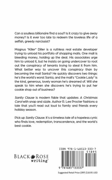 Can a soulless billionaire find a soul? Is it crazy to give away money? Is it ever too late to redeem the loveless life of a selfish, greedy narcissist? Magnus "Killer" Diller is a ruthless real estate developer trying to unload his portfolio of shopping malls. One mall is bleeding money, holding up the deal. His associates urge him to unload it, but he insists on going undercover to root out the conspiracy of tenants trying to steal it from him. What better way to uncover this conspiracy than by becoming the mall Santa? He quickly discovers two things: he's the world's worst Santa, and the mall's "Cookie Lady" is the kind, generous, lovely woman he's dreamed of. Will she speak to him when she discovers he's trying to put her cookie shop out of business? Sanity Clause is modern fable that updates A Christmas Carol with snap and sizzle. Author R. Lee Procter fashions a tale that you'll read out loud to family and friends every holiday season. Pick up Sanity Clause. It's a timeless tale of a hopeless cynic who finds love, redemption, transcendence, and the world's best cookie.