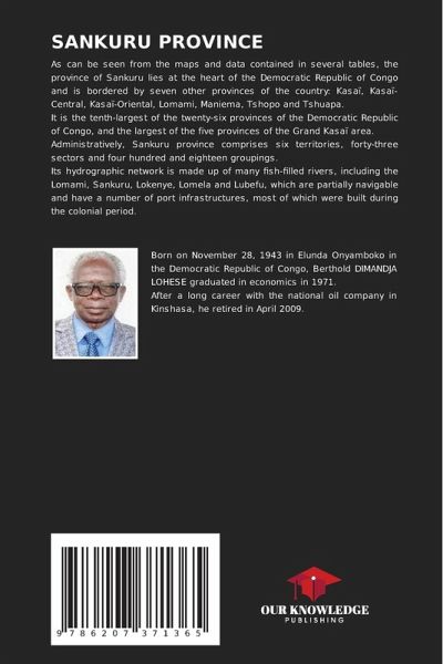 As can be seen from the maps and data contained in several tables, the province of Sankuru lies at the heart of the Democratic Republic of Congo and is bordered by seven other provinces of the country: Kasaï, Kasaï-Central, Kasaï-Oriental, Lomami, Maniema, Tshopo and Tshuapa. It is the tenth-largest of the twenty-six provinces of the Democratic Republic of Congo, and the largest of the five provinces of the Grand Kasaï area. Administratively, Sankuru province comprises six territories, forty-three sectors and four hundred and eighteen groupings. Its hydrographic network is made up of many fish-filled rivers, including the Lomami, Sankuru, Lokenye, Lomela and Lubefu, which are partially navigable and have a number of port infrastructures, most of which were built during the colonial period.