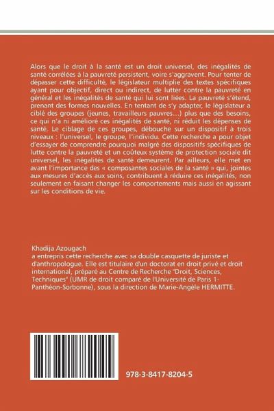 Alors que le droit à la santé est un droit universel, des inégalités de santé corrélées à la pauvreté persistent, voire s'aggravent. Pour tenter de dépasser cette difficulté, le législateur multiplie des textes spécifiques ayant pour objectif, direct ou indirect, de lutter contre la pauvreté en général et les inégalités de santé qui lui sont liées. La pauvreté s'étend, prenant des formes nouvelles. En tentant de s'y adapter, le législateur a ciblé des groupes (jeunes, travailleurs pauvres...) plus que des besoins, ce qui n'a ni amélioré ces inégalités de santé, ni réduit les dépenses de santé. Le ciblage de ces groupes, débouche sur un dispositif à trois niveaux : l'universel, le groupe, l'individu. Cette recherche a pour objet d'essayer de comprendre pourquoi malgré des dispositifs spécifiques de lutte contre la pauvreté et un coûteux système de protection sociale dit universel, les inégalités de santé demeurent. Par ailleurs, elle met en avant l'importance des « composantes sociales de la santé » qui, jointes aux mesures d'accès aux soins, contribuent à réduire ces inégalités, non seulement en faisant changer les comportements mais aussi en agissant sur les conditions de vie.