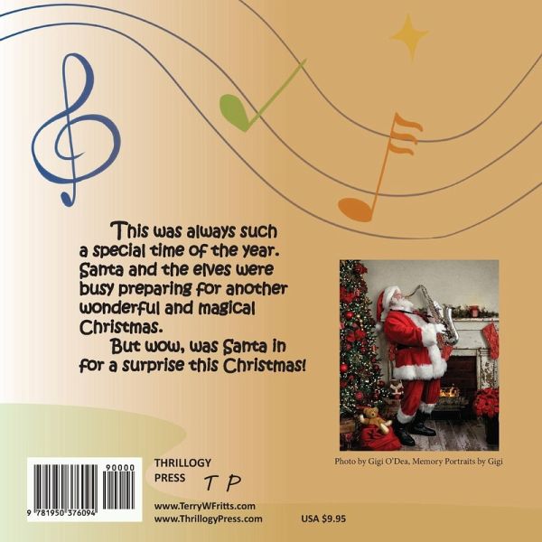 Santa shares stories about his Christmas adventures and receives a surprise Christmas present he has always wanted, a beautiful silver saxophone. But when he plays it for the elves it isn't as easy as he thought. Even Santa must practice. Santa practices while the elves work and soon plays a concert for them. The elves aren't sure but when they hear Santa they break into song and dance. We soon learn the silver saxophone is as magical as Santa..
