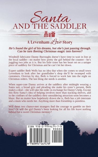 He's found the girl of his dreams, but she's just passing through. Can he turn fleeting Christmas magic into forever? Windmill fabricator Danny Burroughs doesn't have time to wait in line at the local saddler-no matter how pretty the girl behind the counter-he's juggling two jobs as it is. But his little sister has her heart set on a unique piece of saddlery for Christmas and he can't let her down. Expert saddler Beth Wells has no idea that when she comes to small town Levenham to look after her grandfather's shop she'll be swamped with customers. Overrun by day, Beth is forced to work late into the night on Christmas orders. The last thing she needs is another. When super-cute Danny arrives at the saddlery after midnight wearing a Santa suit, a broad grin and pleading she make his sister's present, Beth makes a deal-she will take the order in exchange for Danny's help. Except this flirty Santa's idea of helping involves more than stacking shelves, and in the confines of the saddlery their smouldering attraction soon becomes a blaze. But no matter how hopelessly drawn she is, Beth has a job interstate and a mum who needs her. Anything more than friendship is pointless. Will these two chance-met strangers find the courage to gamble on their love? Or will the girl Danny's been looking for all his life leave nothing behind but a sweet Christmas memory?
