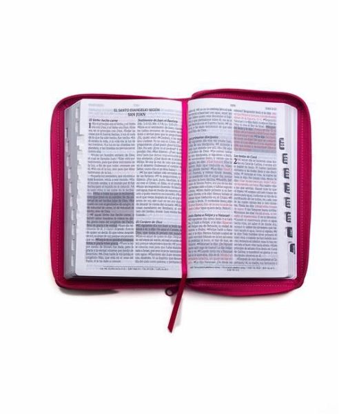 En nuestra Biblia de Promesas se resaltan más de 1 800 promesas y palabras de afirmación de nuestro Dios para nosotros. Dios tiene las palabras que necesitamos tanto en nuestros momentos de mayor angustia como nuestros episodios de mayor celebración. Las promesas de Dios te acompañan en todo momento y para siempre. La nueva tipografía a 12 puntos y su elegante y delgado diseño, en múltiples y exclusivas opciones, permite una agradable lectura, estudio e interacción con el texto bíblico. Más de diez millones de ejemplares de Biblias de Promesas distribuidas a nivel mundial. La Palabra y las promesas de Dios en un tamaño fácil de llevar y leer Características: * Texto bíblico de la Reina-Valera 1960, la versión preferida de los hispanohablantes * Más de 1800 promesas y palabras de afirmación resaltadas para una fácil consulta y aplicación personal * Tipografía de fácil lectura y letra gigante de 12 pts. * Palabras del Señor Jesús en rojo * Referencias cruzadas * Plan de salvación * Sección de promesas por temas * Índice de promesas * Concordancia breve * Mapas * Cinta marcadora * Cremallera e índice opcionales en todos los estilos Our Promise Bible highlights more than 1,800 promises and words of affirmation from our God to us. God has the words we need both in our times of deepest anguish and our episodes of greatest celebration. God's promises are with you at any time and forever. The new 12-point typeface and its elegant and slim design, in multiple and exclusive options, allows for a pleasant reading, study and interaction with the biblical text. More than ten million copies of Promise Bibles distributed worldwide. God's Word and promises in an easy to carry and read size. Features: * Bible text from the Reina-Valera 1960, the preferred version of Spanish speakers * Over 1,800 promises and words of affirmation highlighted for easy reference and personal application * Easy to read typography and giant 12 pt. font * Words of the Lord Jesus in red * Cross references * Salvation Plan * Promises section by subject * Promises index * Short concordance * Maps * Marker ribbon * Optional zipper and index on all styles
