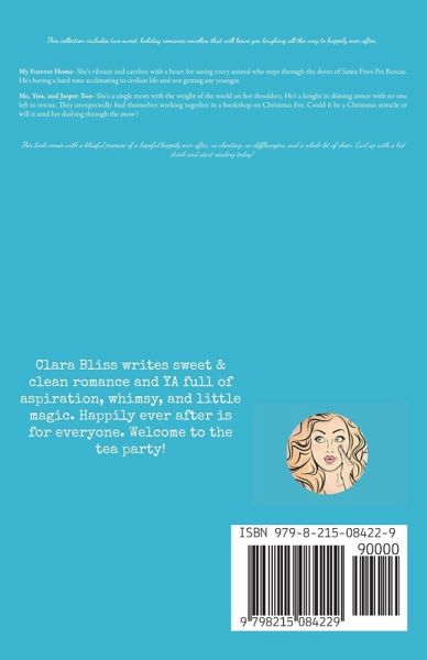 This collection includes two sweet, holiday romance novellas that will leave you laughing all the way to happily ever after. My Forever Home- She's vibrant and carefree with a heart for saving every animal who steps through the doors of Santa Paws Pet Rescue. He's having a hard time acclimating to civilian life and not getting any younger. Me, You, and Jasper Too- She's a single mom with the weight of the world on her shoulders. He's a knight in shining armor with no one left to rescue. They unexpectedly find themselves working together in a bookshop on Christmas Eve. Could it be a Christmas miracle or will it send her dashing through the snow? This book comes with a blissful promise of a hopeful happily ever after, no cheating, no cliffhangers, and a whole lot of cheer. Curl up with a hot drink and start reading today!