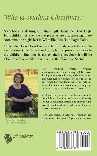 From USA Today Bestselling Author, P.D. Workman!Will the Grinch steal Christmas? Somebody is stealing Christmas gifts from the Bald Eagle Falls children. At the rate that presents are disappearing, there soon won't be a gift left in Whoville. Err, Bald Eagle Falls. Gluten-free baker Erin Price and her friends are on the case to try to unmask the Grinch and bring him to justice, and toys to the children. But time is not on their side. Soon it will be Christmas Eve-will the winner be the Grinch or Santa? ¿¿¿¿¿¿¿¿¿¿ Ms. Workman delivers another great mystery with nice plot twists and charming characters. I enjoyed this book and am looking forward to future installments. Like baking mysteries? Cats, dogs, and other pets? Award-winning and USA Today Bestselling Author P.D. Workman brings readers back to small town Bald Eagle Falls for another culinary cozy mystery to be solved by gluten-free baker Erin Price and her friends.Have your gluten-free cake and eat it too. Sink your teeth into this sweet treat now!