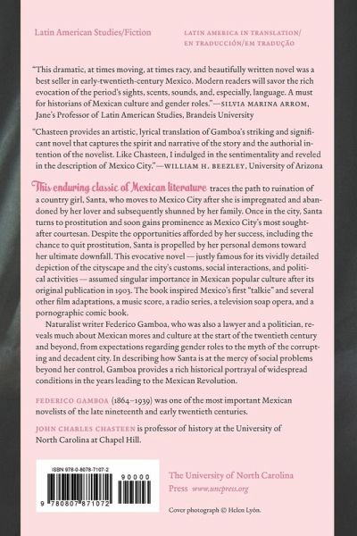 This enduring classic of Mexican literature traces the path to ruination of a country girl, Santa, who moves to Mexico City after she is impregnated and abandoned by her lover and subsequently shunned by her family. Once in the city, Santa turns to prostitution and soon gains prominence as Mexico City’s most sought-after courtesan. Despite the opportunities afforded by her success, including the chance to quit prostitution, Santa is propelled by her personal demons toward her ultimate downfall. This evocative novel—justly famous for its vividly detailed depiction of the cityscape and the city’s customs, social interactions, and political activities—assumed singular importance in Mexican popular culture after its original publication in 1903. The book inspired Mexico’s first “talkie” and several other film adaptations, a music score, a radio series, a television soap opera, and a pornographic comic book. Naturalist writer Federico Gamboa, who was also a lawyer and politician, reveals much about Mexican mores and culture at the start of the twentieth century and beyond, from expectations regarding gender roles to the myth of the corrupting and decadent city. In describing how Santa is at the mercy of social problems beyond her control, Gamboa provides a rich historical portrayal of widespread conditions in the years leading to the Mexican Revolution.