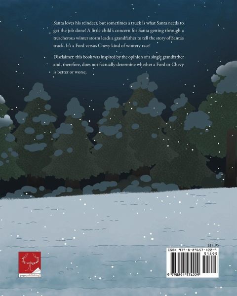 Santa loves his reindeer, but sometimes a truck is what Santa needs to get the job done! A little child's concern for Santa getting through a treacherous winter storm leads a grandfather to tell the story of Santa's truck. It's a Ford versus Chevy kind of wintery race! Disclaimer: this book was inspired by the opinion of a single grandfather and, therefore, does not factually determine whether a Ford or Chevy is better or worse.