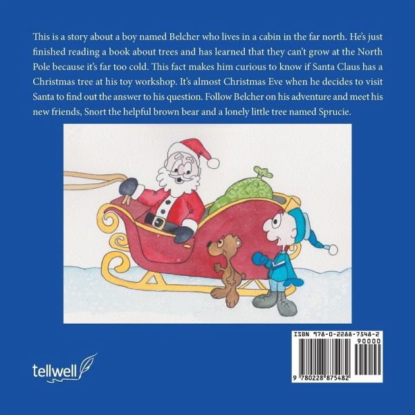 This is a story about a boy named Belcher who lives in a cabin in the far north. He's just finished reading a book about trees and has learned that they can't grow at the North Pole because it's far too cold. This fact makes him curious to know if Santa Claus has a Christmas tree at his toy workshop. It's almost Christmas Eve when he decides to visit Santa to find out the answer to his question. Follow Belcher on his adventure and meet his new friends, Snort the helpful brown bear and a lonely little tree named Sprucie.