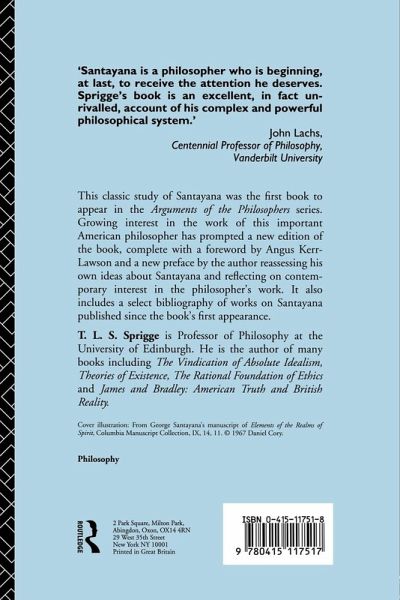 This classic study of Santayana was the first book to appear in the Arguments of the Philosophers series. Growing interest in the work of this important American philosopher has prompted this new edition of the book complete with a new preface by the author reassessing his own ideas about Santayana and reflecting the new interest in the philosopher's work. A select bibliography of works published about Santayana since the book's first appearance is also included.