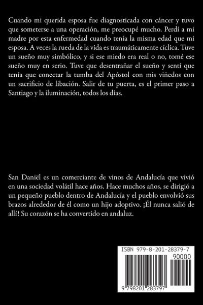 Cuando mi querida esposa fue diagnosticada con cáncer y tuvo que someterse a una operación, me preocupé mucho. Perdí a mi madre por esta enfermedad cuando tenía la misma edad que mi esposa. A veces la rueda de la vida es traumáticamente cíclica. Tuve un sueño muy simbólico, y si ese miedo era real o no, tomé ese sueño muy en serio. Tuve que desentrañar el sueño y sentí que tenía que conectar la tumba del Apóstol con mis viñedos con un sacrificio de libación. Salir de tu puerta, es el primer paso a Santiago y la iluminación, todos los días. San Daniël es un comerciante de vinos de Andalucía que vivió en una sociedad volátil hace años. Hace muchos años, se dirigió a un pequeño pueblo dentro de Andalucía y el pueblo envolvió sus brazos alrededor de él como un hijo adoptivo. ¡Él nunca salió de allí! Su corazón se ha convertido en andaluz.