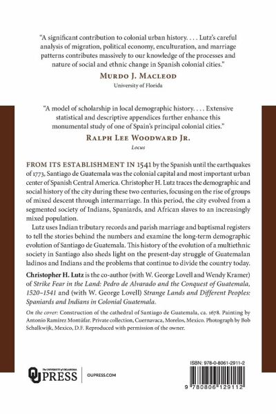 Santiago de Guatemala was the colonial capital and most important urban center of Spanish Central America from its establishment in 1541 until the earthquakes of 1773. Christopher H. Lutz traces the demographic and social history of the city during this period, focusing on the rise of groups of mixed descent. During these two centuries the city evolved from a segmented society of Indians, Spaniards, and African slaves to an increasingly mixed population as the formerly all-Indian barrios became home to a large intermediate group of ladinos. The history of the evolution of a multiethnic society in Santiago also sheds light on the present-day struggle of Guatemalan ladinos and Indians and the problems that continue to divide the country today.