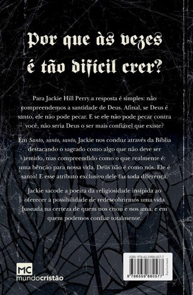 Por que às vezes é tão difícil crer? Para Jackie Hill Perry a resposta é simples: não compreendemos a santidade de Deus. Afinal, se Deus é santo, ele não pode pecar. E se ele não pode pecar contra você, não seria Deus o ser mais confiável que existe? Em Santo, santo, santo, Jackie nos conduz através da Bíblia destacando o sagrado como algo que não deve ser temido, mas compreendido como o que realmente é uma bênção para nossa vida. Deus não é como nós. Ele é santo! E esse atributo exclusivo dele faz toda diferença. Jackie sacode a poeira da religiosidade insípida ao oferecer a possibilidade de redescobrirmos uma vida baseada na certeza de quem nos criou e nos ama, e em quem podemos confiar totalmente.