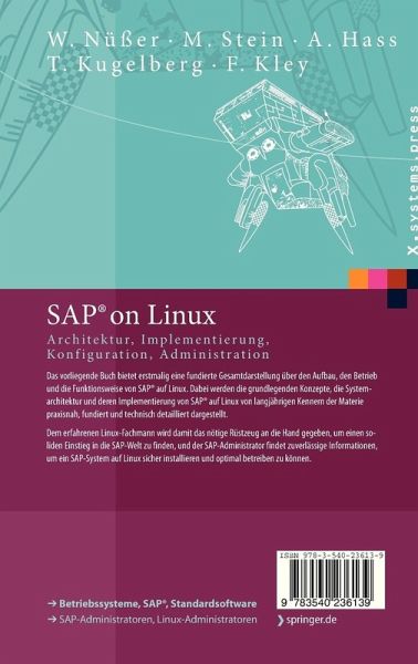 "... Ausgehend von der Architektur der SAP-Software wird deren Implementierung, Konfiguration und Administration detailliert erläutert. Auch die Fragestellung der Migration existierender SAP-Systeme auf Linux mit Blickwinkel Open Source und Hochverfügbarkeit kommt nicht zu kurz. Es wird deutlich, dass Linux sich als vollwertige Alternative für geschäftskritische SAP·Systeme eignet."