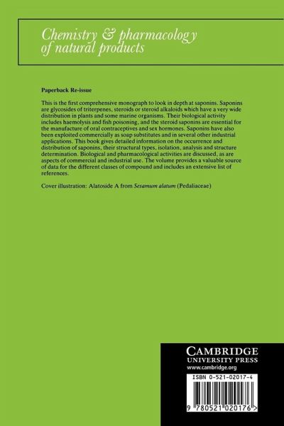 This book is a timely incursion into the field and provides information about occurrence and distribution, structural types, isolation, analysis and structure determination of saponins. Biological and pharmacological activities are discussed, as are aspects of commerical and industrial use. Numerous examples are presented, providing a valuable source of data for the different classes of compound.