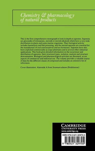 This is the first comprehensive monograph to look in depth at saponins. Saponins are glycosides of triterpenes, steroids or steroid alkaloids which have a very wide distribution in plants and some marine organisms. Their biological activity includes haemolysis and fish poisoning, and the steroid saponins are essential for the manufacture of oral contraceptives and sex hormones. Saponins have also been exploited commercially as soap substitutes and in several other industrial applications. This book gives detailed information on the occurrence and distribution of saponins, their structural types, isolation, analysis and structure determination. Biological and pharmacological activities are discussed, as are aspects of commercial and industrial use. The volume provides a valuable source of data for the different classes of compound and includes and extensive list of references.