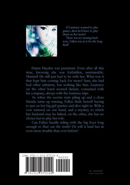 Damn Hayden was persistent. Even after all this time, knowing she was forbidden, unattainable. Married! He still just had to see her. What was it that kept him coming back? Sure she had had admirers, but nothing like him. Laurence on the other hand seemed distant, consumed with his company, always with the business trips. So when the secrets start piling up, and a close friend turns up missing, Fallyn finds herself having to put on her big girl panties and dive right in. With a vow renewal in one hand, and a mystery to which her husband may be linked, in the other, she has no choice but to play her role. Can Fallyn handle riding with the big boys long enough to find out the truth? Or will it land her in even more trouble than ever before?