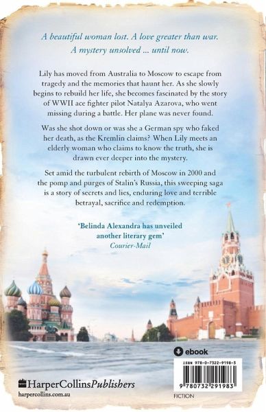 2000: the wreckage of a downed WWII fighter plane is discovered in the forests near Russia's Ukrainian border. the aircraft belonged to Natalya Azarova, ace pilot and pin-up girl for Soviet propaganda, but the question of her fate remains unanswered. Was she a German spy who faked her own death, as the Kremlin claims? Her lover, Valentin Orlov, now a highly-decorated general, refuses to believe it. Lily, a young Australian woman, has moved to Moscow to escape from tragedy. She becomes fascinated by the story of Natalya, and when she meets an elderly woman who claims to know the truth behind the rumours, Lily is drawn deeper into the mystery. From the pomp and purges of Stalin's Russia through the horrors of war and beyond - secrets and lies, enduring love and terrible betrayal, sacrifice and redemption all combine in this sweeping saga from Belinda Alexandra.
