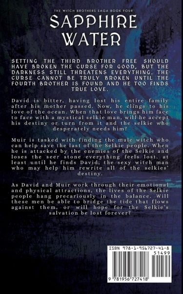 Setting the third brother free should have broken the curse for good, but the darkness still threatens everything. The curse cannot be truly broken until the fourth brother is found and he too finds true love. David is bitter, having lost his entire family after his mother passed. Now, he clings to his love of the ocean. When that love brings him face to face with a mystical selkie man, will he accept his destiny or turn from it and the selkie who desperately needs him? Muir is tasked with finding the male witch who can help save the last of the Selkie people. When he is attacked by the enemies of the Selkie and loses the seer stone everything feels lost, at least until he finds David, the sexy witch man who may help him rewrite all of the selkies' destiny. As David and Muir work through their emotional and physical attractions, the lives of the Selkie people hang precariously in the balance. Will these men be able to bridge the tide that flows against them, or will hope for the Selkie's salvation be lost forever?