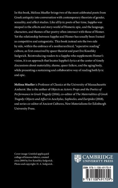 "Juxtaposing Sappho and Homer within the embrace of a non-hierarchical, "reparative reading" culture, as first conceived by queer theorist and poet Eve Kosofsky Sedgwick, this book reintroduces readers to a Sappho who supplements Homer's vision, allowing for a sustaining, collaborative way of reading both lyric and epic"--