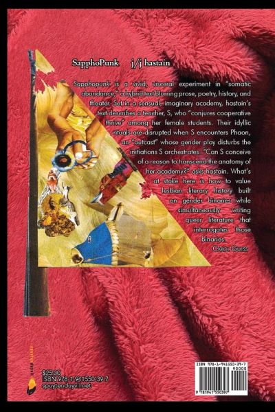 Poetry. "SAPPHOPUNK is a vivid, visceral experiment in 'somatic abundance, ' a hybrid text blurring prose, poetry, history, and theater. Set in a sensual, imaginary academy, hastain's text describes a teacher, S, who 'conjures cooperative thrive' among her female students. Their idyllic rituals are disrupted when S encounters Phaon, an 'outcast' whose gender play disturbs the initiations S orchestrates. 'Can S conceive of a reason to transcend the anatomy of her academy?' asks hastain. What's at stake here is how to value lesbian literary history built on gender binaries while simultaneously writing queer literature that interrogates those binaries." Carol Guess"