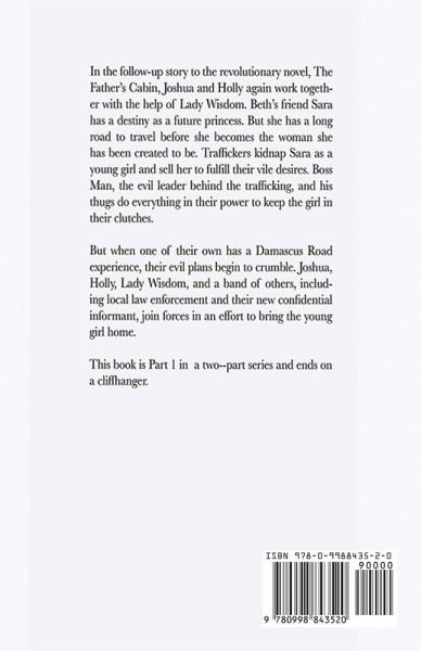 In the follow-up story to the revolutionary novel, The Father's Cabin, Joshua and Holly again work together with the help of Lady Wisdom. Beth's friend Sara has a destiny as a future princess. But she has a long road to travel before she becomes the woman she has been created to be. traffickers kidnap Sara as a young girl and sell her to fulfill their vile desires. Boss Man, the evil leader behind the trafficking, and his thugs do everything in their power to keep the girl in their clutches. But when one of their own has a Damascus Road experience, their evil plans begin to crumble. Joshua, Holly, Lady Wisdom, and a band of others, including local law enforcement and their new confidential informant, join forces in an effort to bring the young girl home.