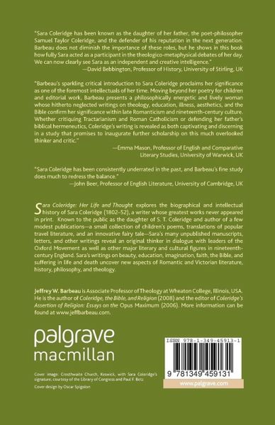 "Sara Coleridge has been known as the daughter of her father, the poet-philosopher Samuel Taylor Coleridge, and the defender of his reputation in the next generation. Jeffrey W. Barbeau does not diminish the importance of these roles, but he shows in this book how fully Sara acted as a participant in the theologico-metaphysical debates of her day. Taking issue with the Oxford Movement, she wrote penetratingly on the salient religious issues of the time such as the nature of regeneration. We can now clearly see Sara as an independent and creative intelligence." - David Bebbington, Professor of History, University of Stirling, UK