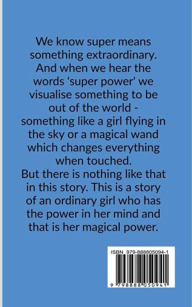 We know super means something extraordinary. And when we hear the words 'super power' we visualise something to be out of the world - something like a girl flying in the sky or a magical wand which changes everything when touched. But there is nothing like that in this story. This is a story of an ordinary girl who has the power in her mind and that is her magical power.