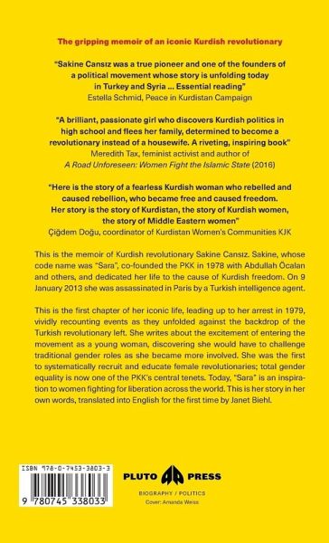 The bitter struggle of the Kurdistan Workers' Party, or PKK, against the Turkish state has delivered inspirational but often tragic stories. This memoir by Kurdish revolutionary Sakine Cansiz is one of them. Sakine, whose code name was 'Sara', co-founded the PKK in 1974 and dedicated her life to its cause. On the 9 January 2013 she was assassinated in Paris in circumstances that remain officially unresolved. This is the first chapter of her iconic life, leading up to her arrest in 1979, penned as dramatic events unfolded against the backdrop of the Turkish revolutionary left. She writes about the excitement of entering the movement as a young woman, discovering she would have to challenge traditional gender roles as she rose amongst its ranks. She was one of the first to demand the recruitment and education of female revolutionaries, and demanded total gender equality within the PKK, which is now one of its central tenets. Today, 'Sara' is an inspiration to women fighting for liberation across the world. This is her story in her own words, and is in turns shocking, violent and path-breaking.Translated by Janet Biehl.