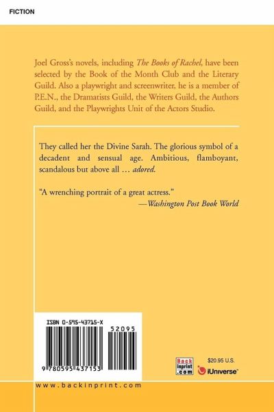 They called her the Divine Sarah. The glorious symbol of a decadent and sensual age. Ambitious, flamboyant, scandalous but above all . adored. "A wrenching portrait of a great actress."-Washington Post Book World