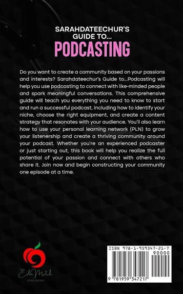 Do you want to create a community based on your passions and interests? Sarahdateechur's Guide to...Podcasting will help you use podcasting to connect with like-minded people and spark meaningful conversations. This comprehensive guide will teach you everything you need to know to start and run a successful podcast, including how to identify your niche, choose the right equipment, and create a content strategy that resonates with your audience. You'll also learn how to use your personal learning network (PLN) to grow your listenership and create a thriving community around your podcast. Whether you're an experienced podcaster or just starting out, this book will help you realize the full potential of your passion and connect with others who share it. Join now and begin constructing your community one episode at a time.