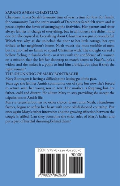 SARAH'S AMISH CHRISTMAS Christmas. It was Sarah's favourite time of year; a time for love, for family, for community. For the entire month of December Sarah felt warm and at peace despite the havoc of arranging the festivities. Her parents and sister always left her in charge of everything, but in all honesty she didn't mind one bit. She enjoyed it. Everything about Christmas was just so wonderful. Which was why, as she unlocked the door to her little cottage, her eyes drifted to her neighbour's home. Noah wasn't the most sociable of men, but he also had no family to spend Christmas with. The thought carved a hollow feeling in Sarah's chest - so it was with the confidence of a woman on a mission that she left her doorstep to march across to Noah's...he's a widow and she makes it a point to find him a bride...but what if she's the right woman? THE SHUNNING OF MARY BONTRAGER Mary Bontrager is having a difficult time letting go of the past. Years ago she left her Amish community out of spite but now she's forced to return with her young son in tow. Her mother is forgiving but her father...cold and distant. He allows Mary to stay providing she accept the stipulations of Amish life. Mary is resentful but has no other choice. It isn't until Noah, a handsome farmer, begins to soften her heart with some old-fashioned courtship. But once again Mary's father intervenes and the growing affection between the couple is stifled. Can they overcome the strict rules of Mary's father and put a past of hurtful shunning behind them?